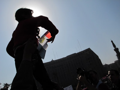 "مبارك دمر حياتي"، هكذا يقول محمد محمود محدثا شابا من أبناء الطبقة الغنية، أبيض البشرة أنيق الهندام، ينصت باهتمام ويهز رأسه موافقة بين الفينة والأخرى. الإثنان يجلسان مقرفصين بجانب أحد عواميد الكهرباء بالجزيرة الحجرية – أو الكعكة الحجرية كما يسميها المصريون - التي تتوسط ميدان التحرير. يحملان العلامات المألوفة التي أصبحت بمثابة زي رسمي للقابعين هنا: قطعة من القطن مثبتة بشريط لاصق على الجبين تضمد جروحا أصيبا بها جراء تراشق المتظاهرين بالحجارة مع فرق البلطجية وغيرهم من مؤيدي النظام. ورذاذ من أوراق الحشيش الأصفر الجاف جمعها جسداهما استلقاء وقرفصة في حدائق الميدان. وأخيرا وجه يرتدي حالة ما بين الإرهاق والنشوة والشديدين.